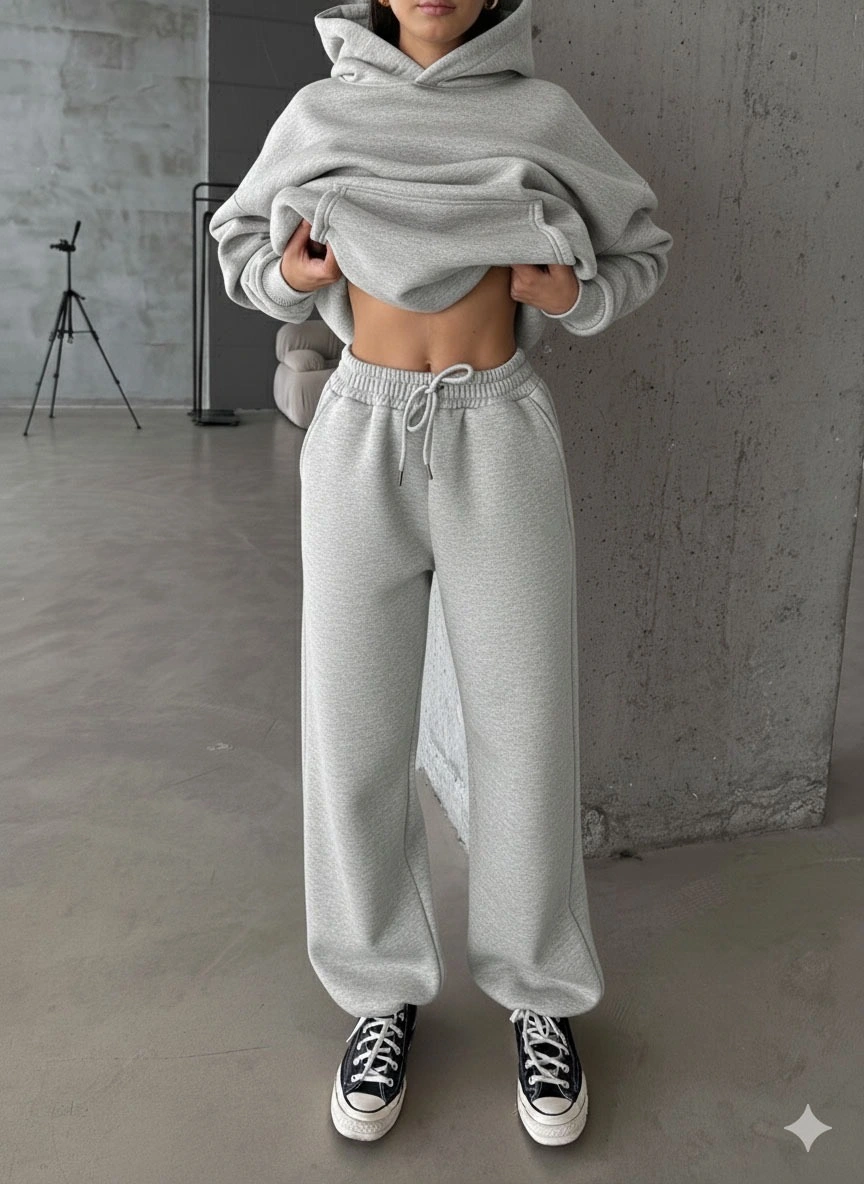 KAZAX markasının şık ve konforlu bir seçeneği olan 3 iplik şardonlu Lastik paça eşofman gri p510439, spor şıklığı seven kadınların tercihi oluyor.