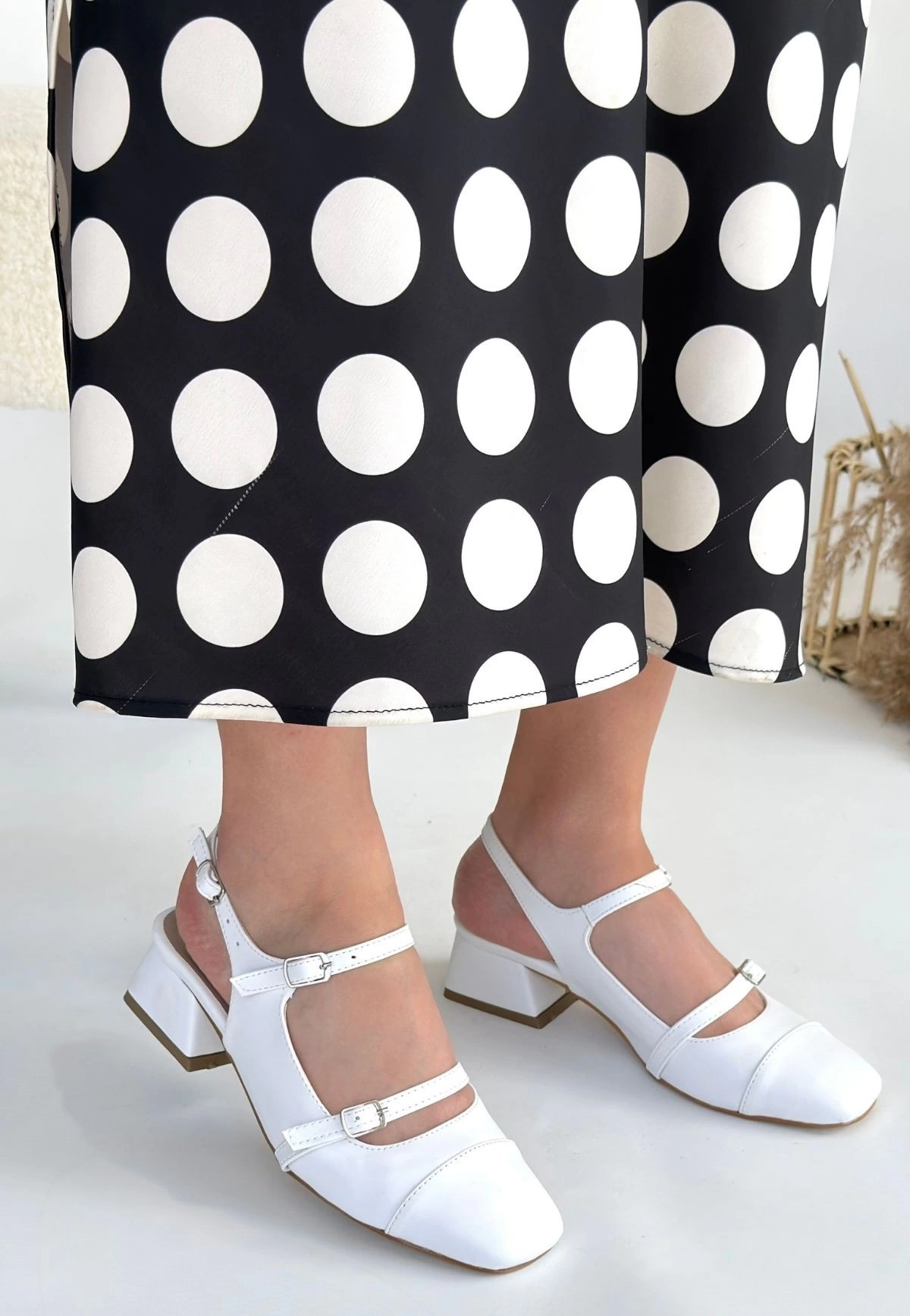 Doran Beyaz Cilt Topuklu Ayakkabı
