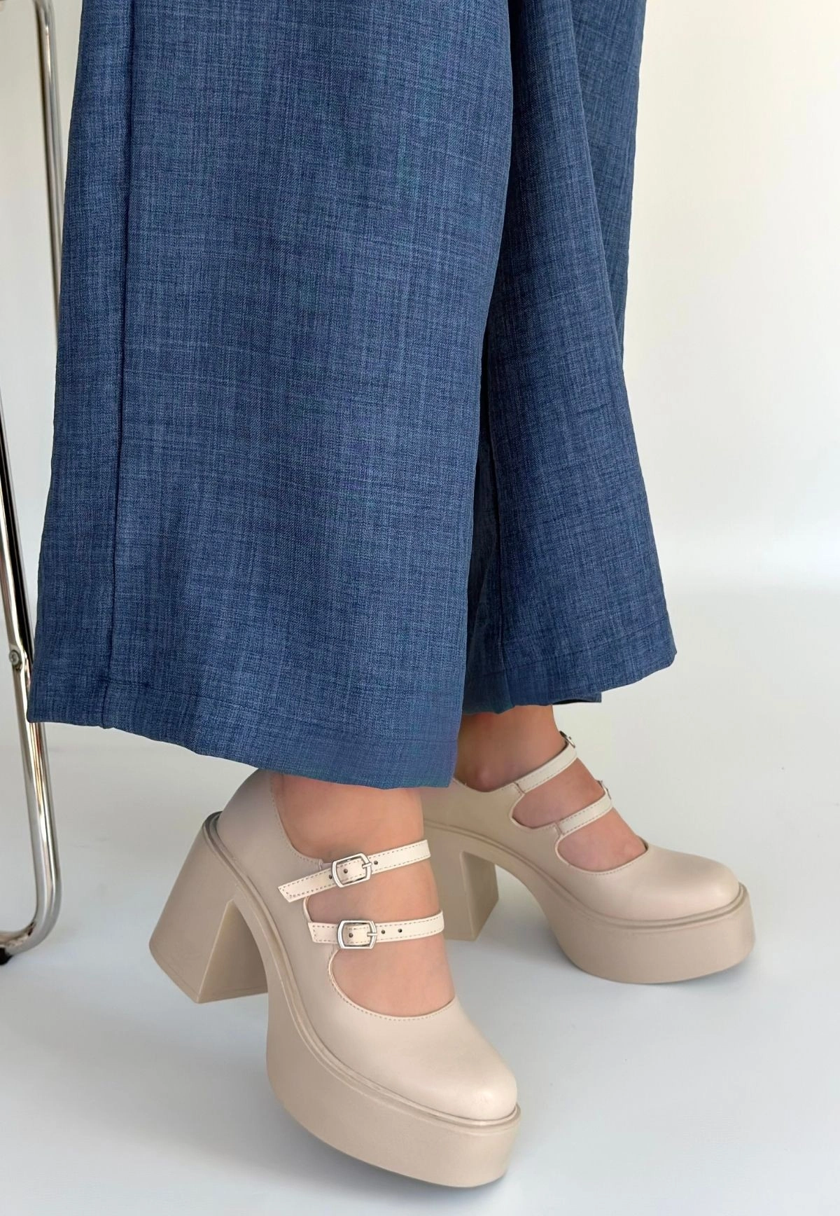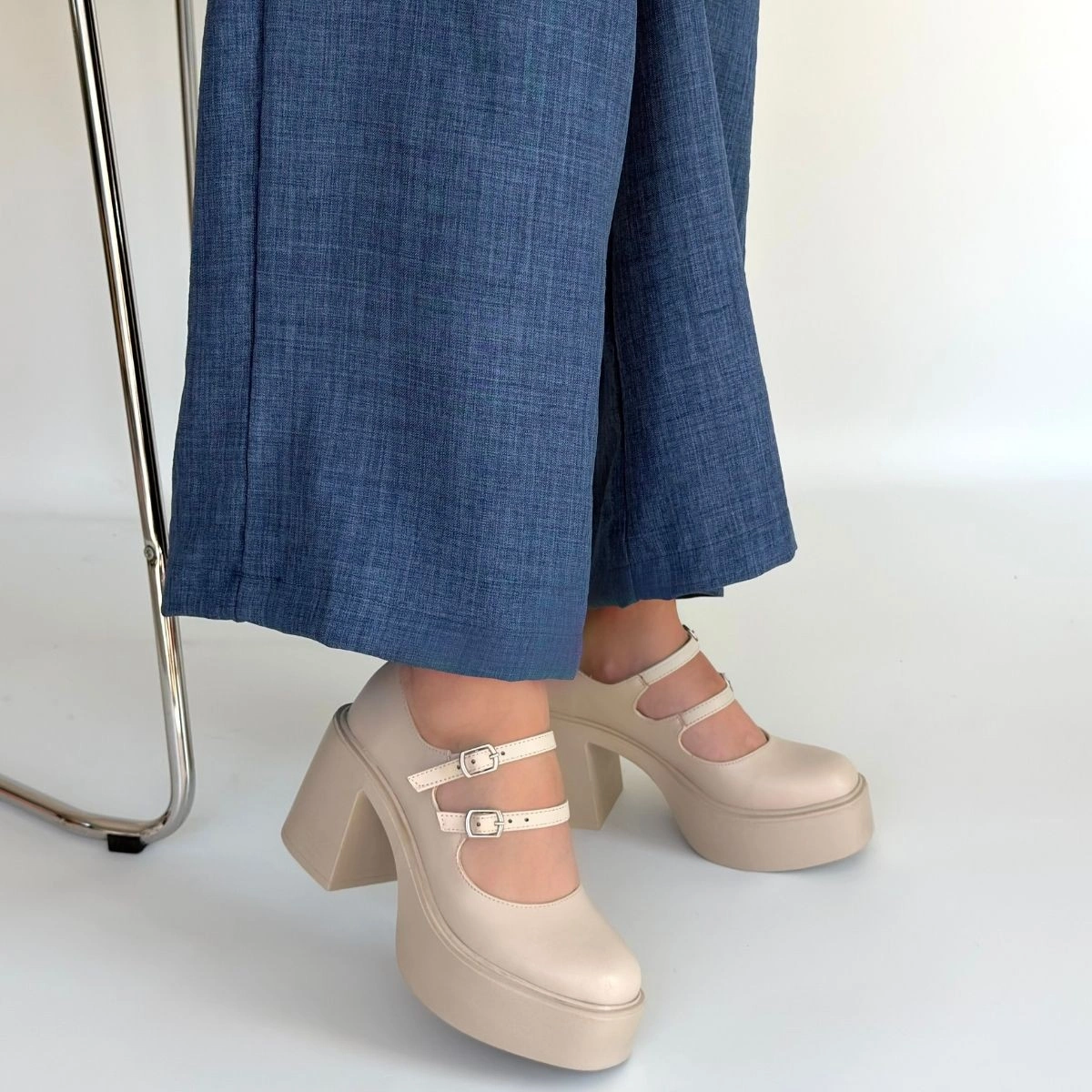 Jarlo Bej Cilt Dolgu Topuk Ayakkabı