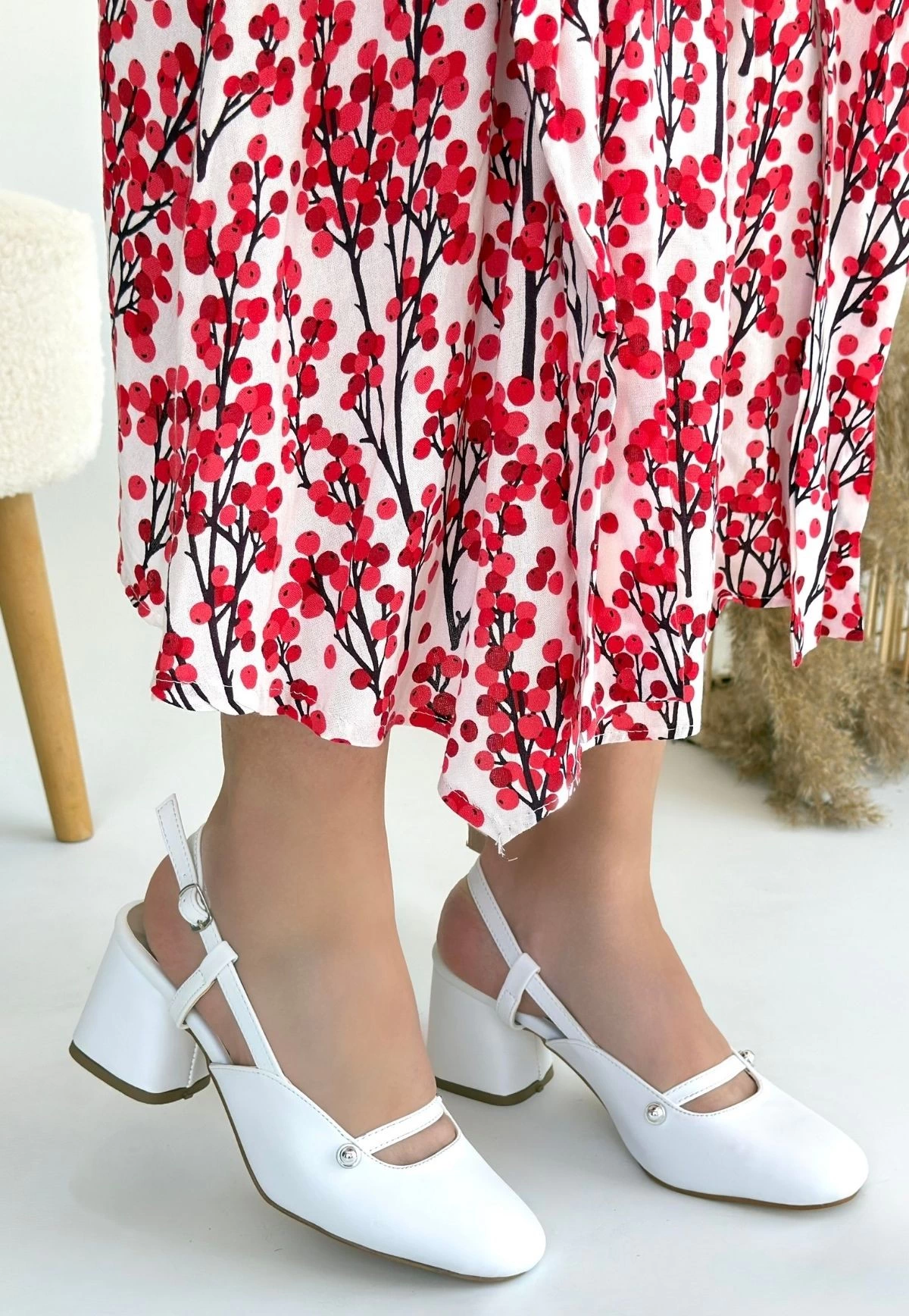 Jecci Beyaz Cilt Topuklu Ayakkabı