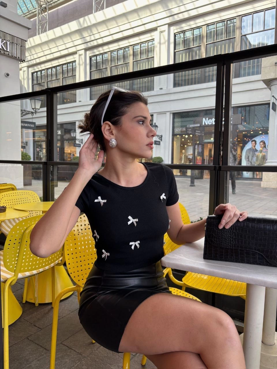 Bağcıklı fiyonk detayıyla feminen bir görünüm kazandırır.