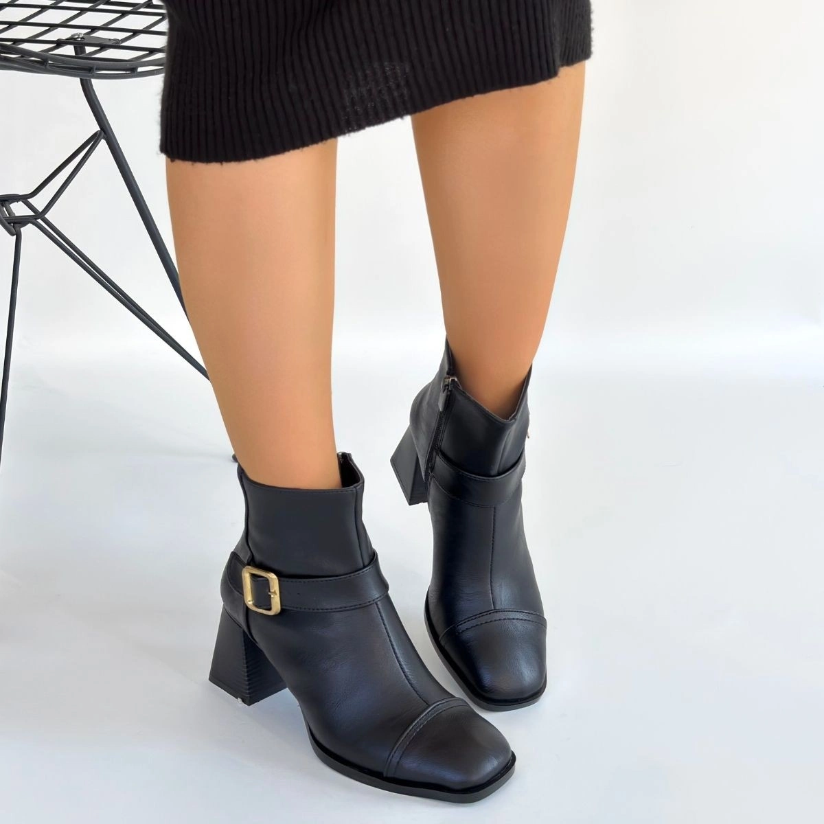 Mejjo Siyah Cilt Topuklu Bot