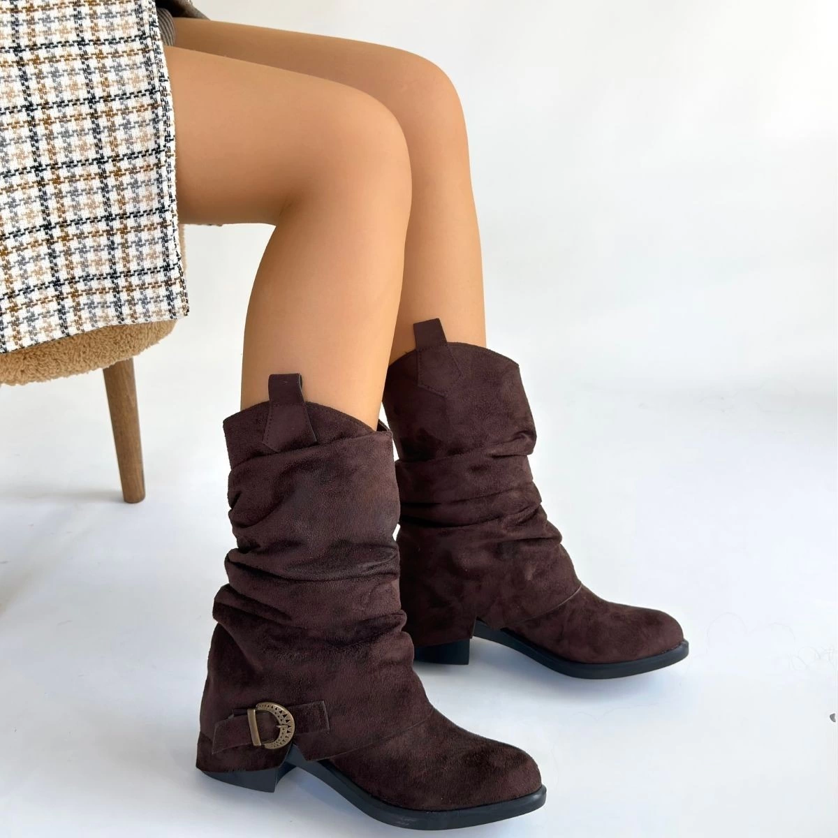 Canty Kahverengi Süet Körüklü Topuklu Çizme