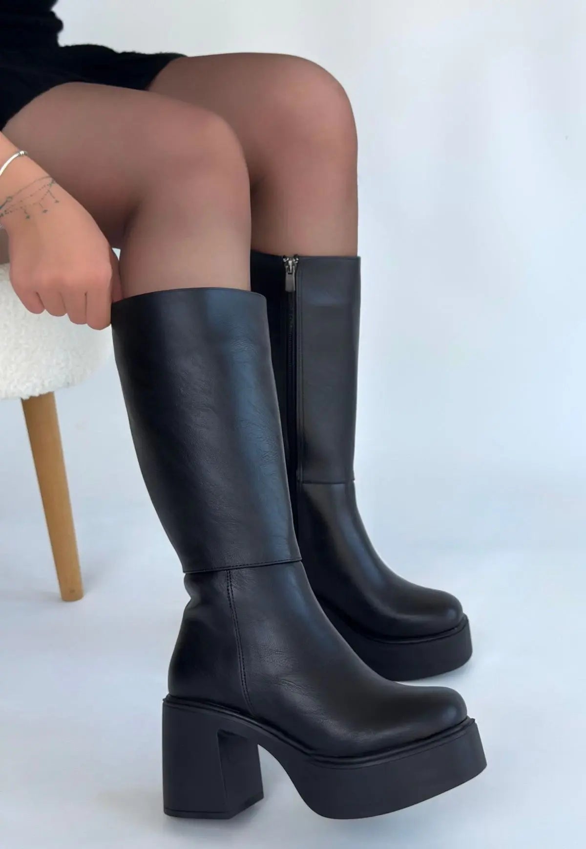 Detay: Topuklu Yandan Fermuarlı Diz Altı Çizme