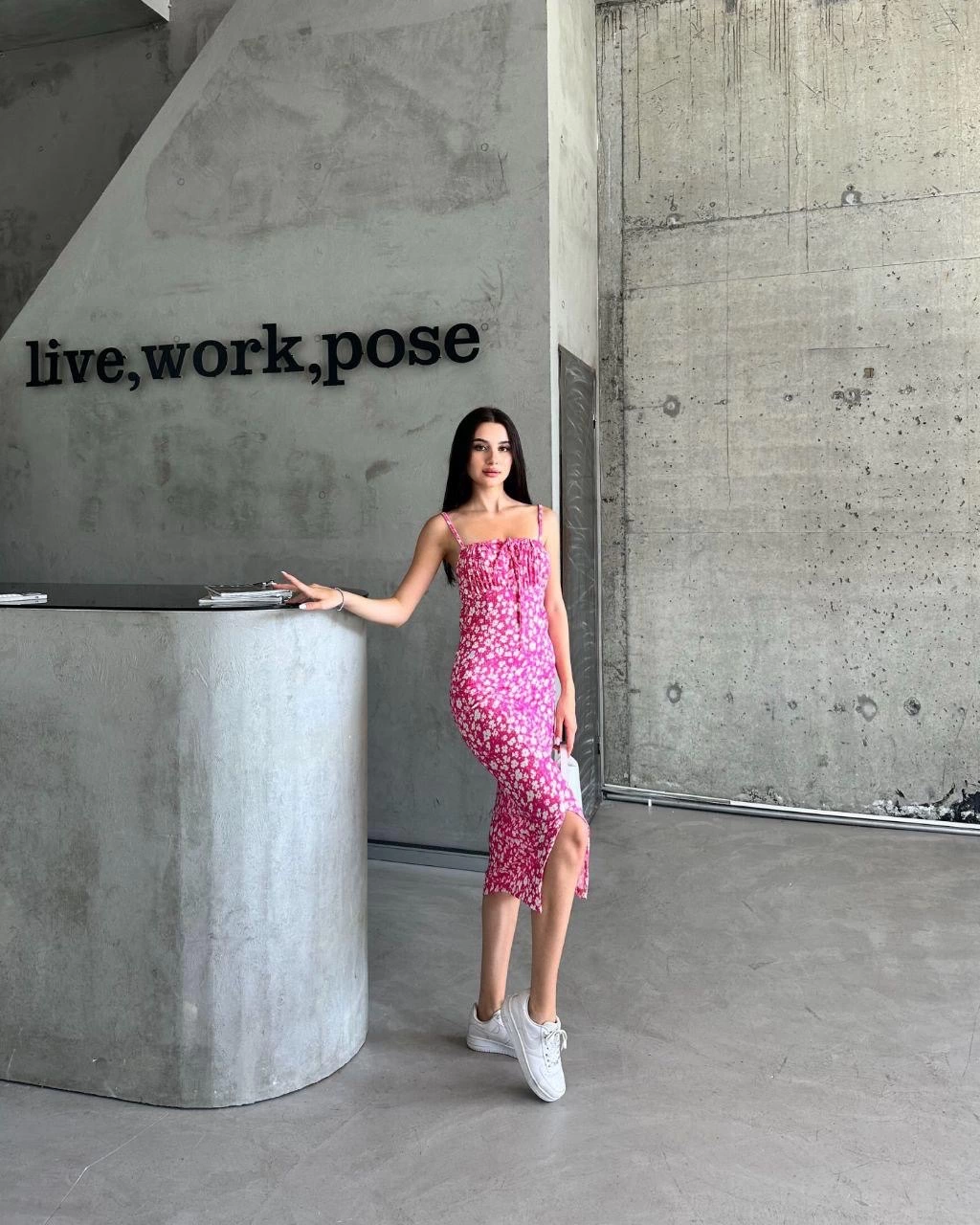 Model, fotoğraftakinden daha şık duruyor. Kumaş akışkan olduğu için hareket ettikçe hoş bir görüntü oluşturuyor.