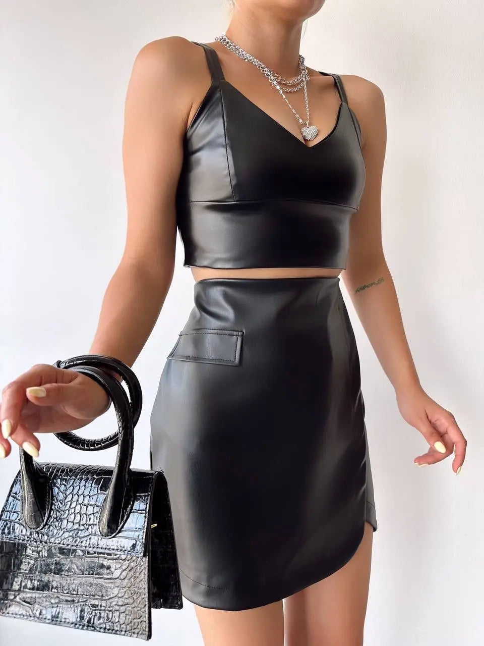 Şıklık ve zarafetin buluştuğu Cep Detaylı Oval Kapaklı Deri Etek Siyah, gardırobunuzun vazgeçilmezi olmaya aday!