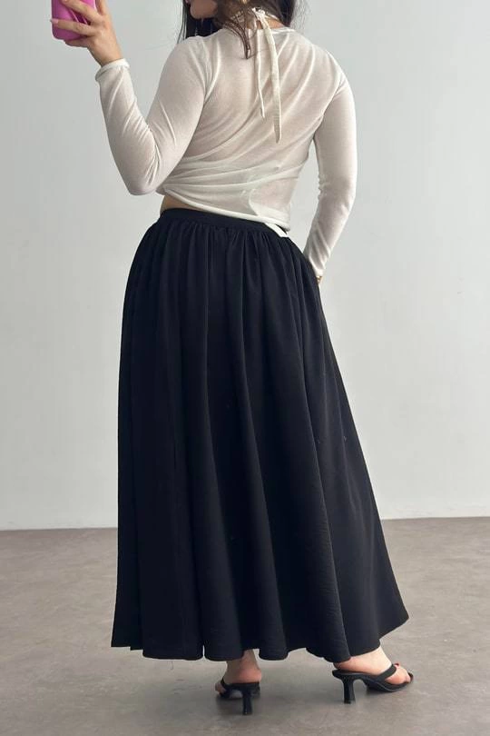 Bu şık siyah keten eteği günlük hayatta, iş yerinde veya özel davetlerde rahatlıkla tercih edebilir ve farkınızı ortaya koyabilirsiniz.