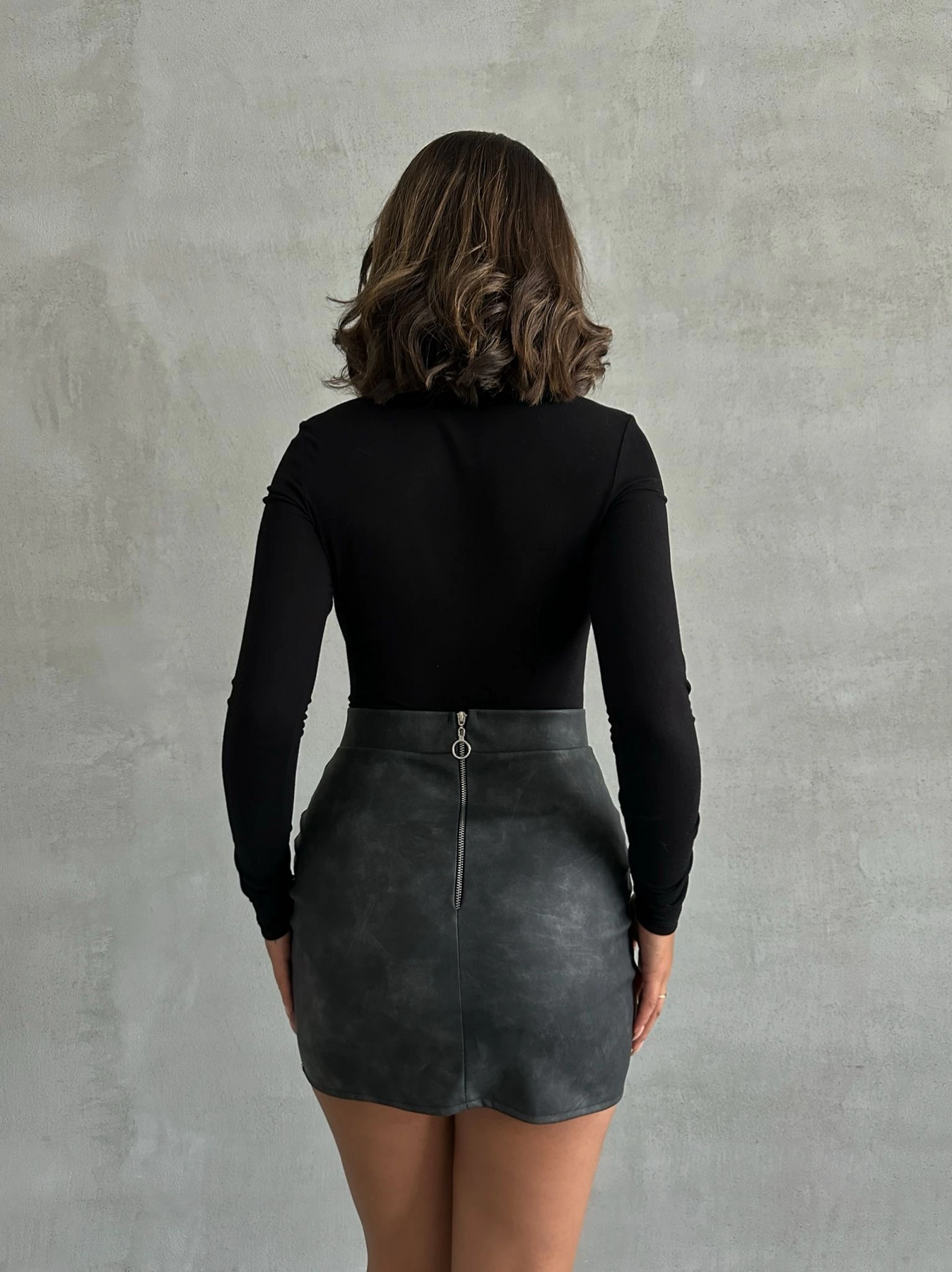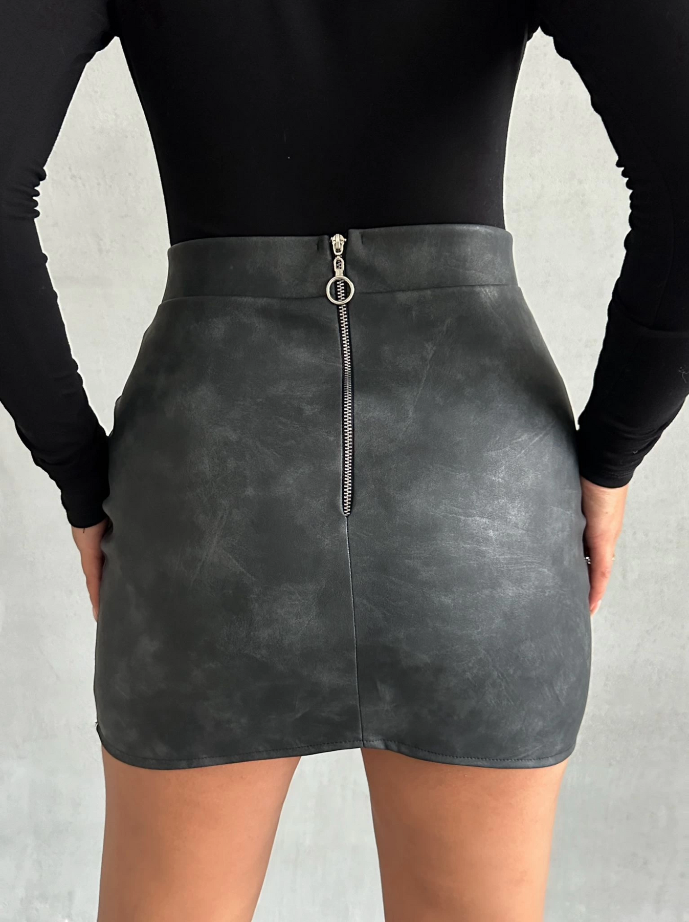 Eskitme deri mini etek, şıklık ve rahatlığı bir arada sunan KAZAX markasının öne çıkan parçalarından biridir.