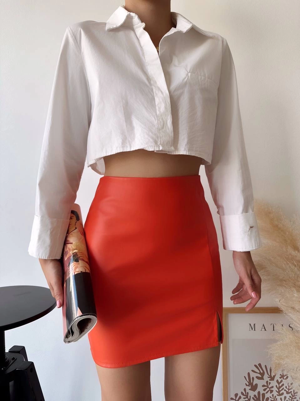 Yeni sezonun trend parçalarından olan turuncu deri etek, gardırobunuza enerjik bir dokunuş yapacak!