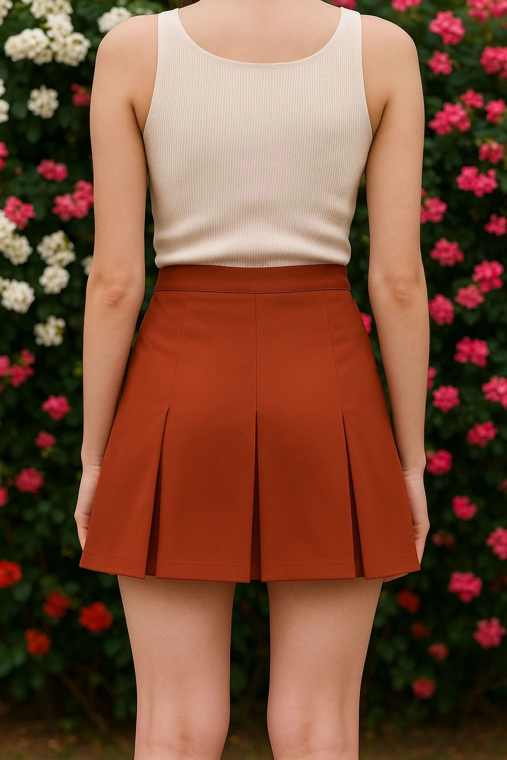 Üç pile detayıyla hareket kazanan eteğin, bel kısmındaki şerit detayı da vücudu kusursuz bir şekilde saran bir görünüm sağlıyor.