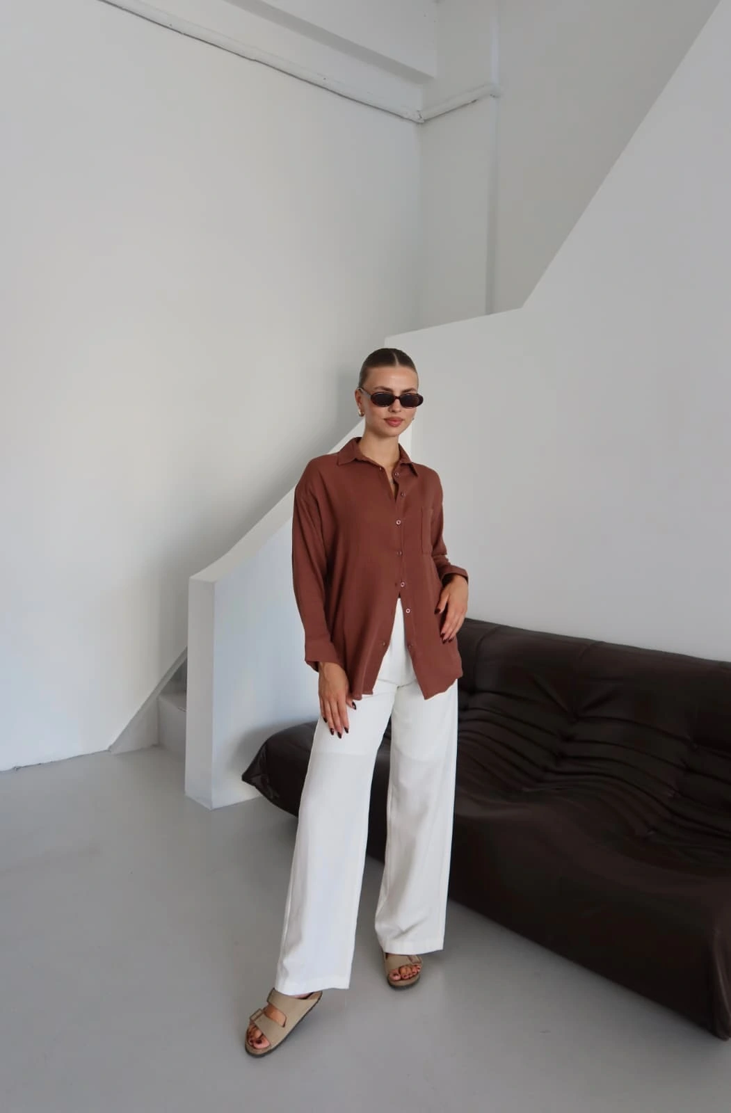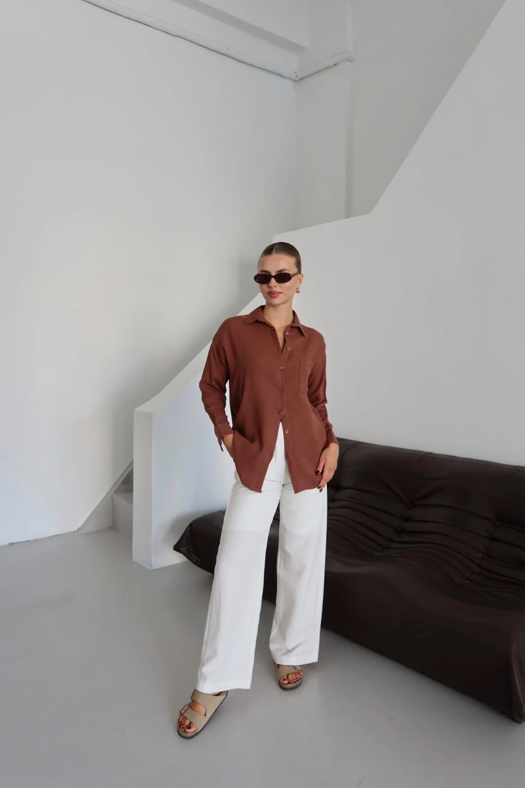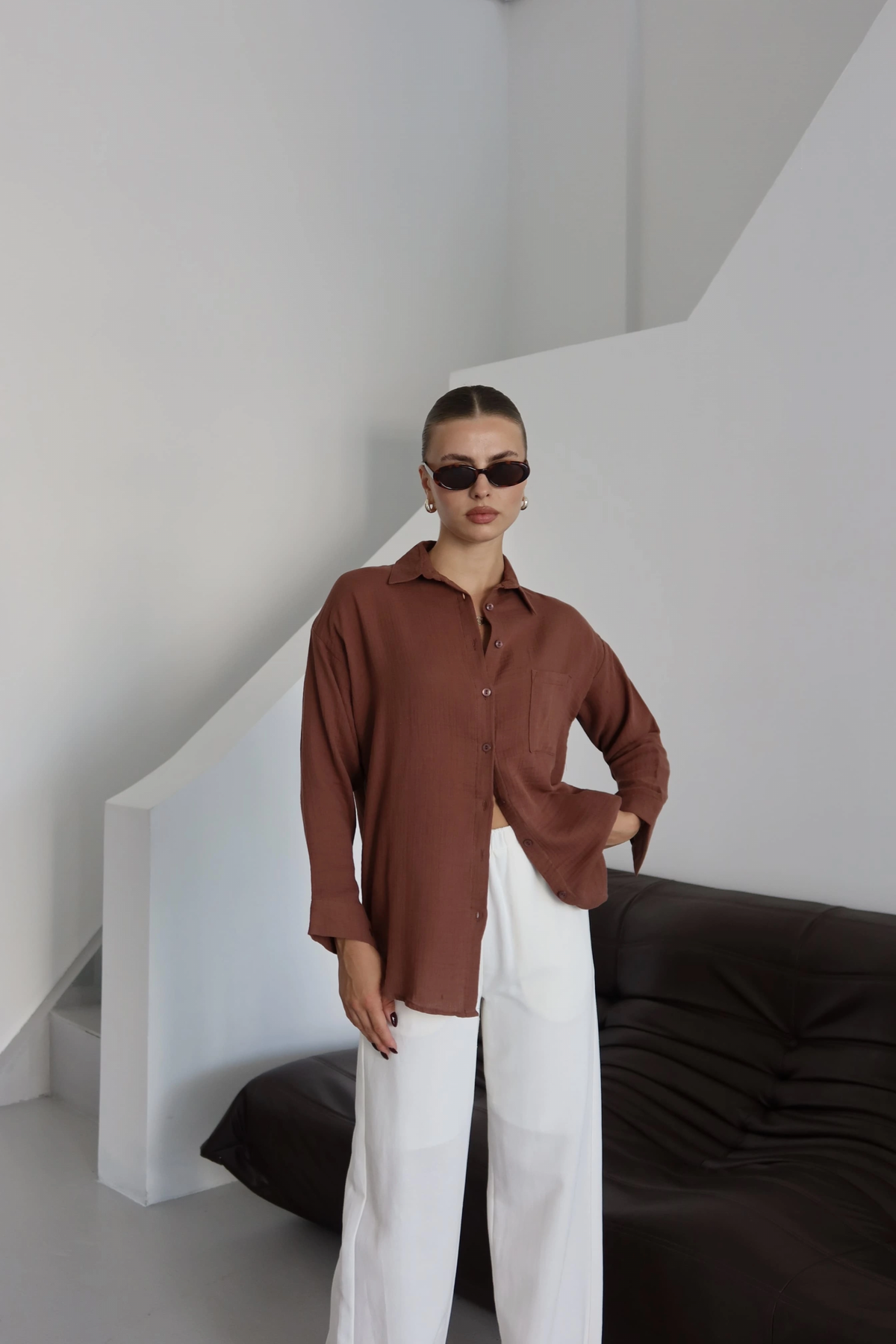 Kadın Giyim kategorisindeki şıklık ve rahatlığı buluşturan Müslin Gömlek Kahve PT ile tarzınızı ortaya koyun.