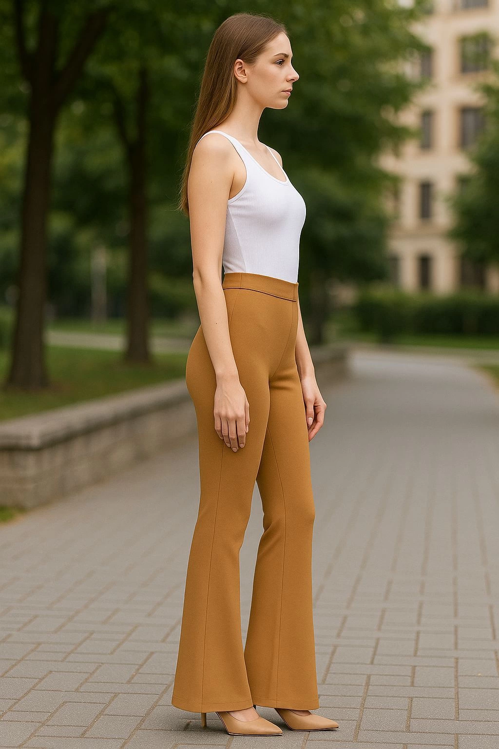 Yüksek bel kesimi ile vücudu saran ve uzun bir görünüm sağlayan palazzo pantolon, her bedene uyum sağlar.
