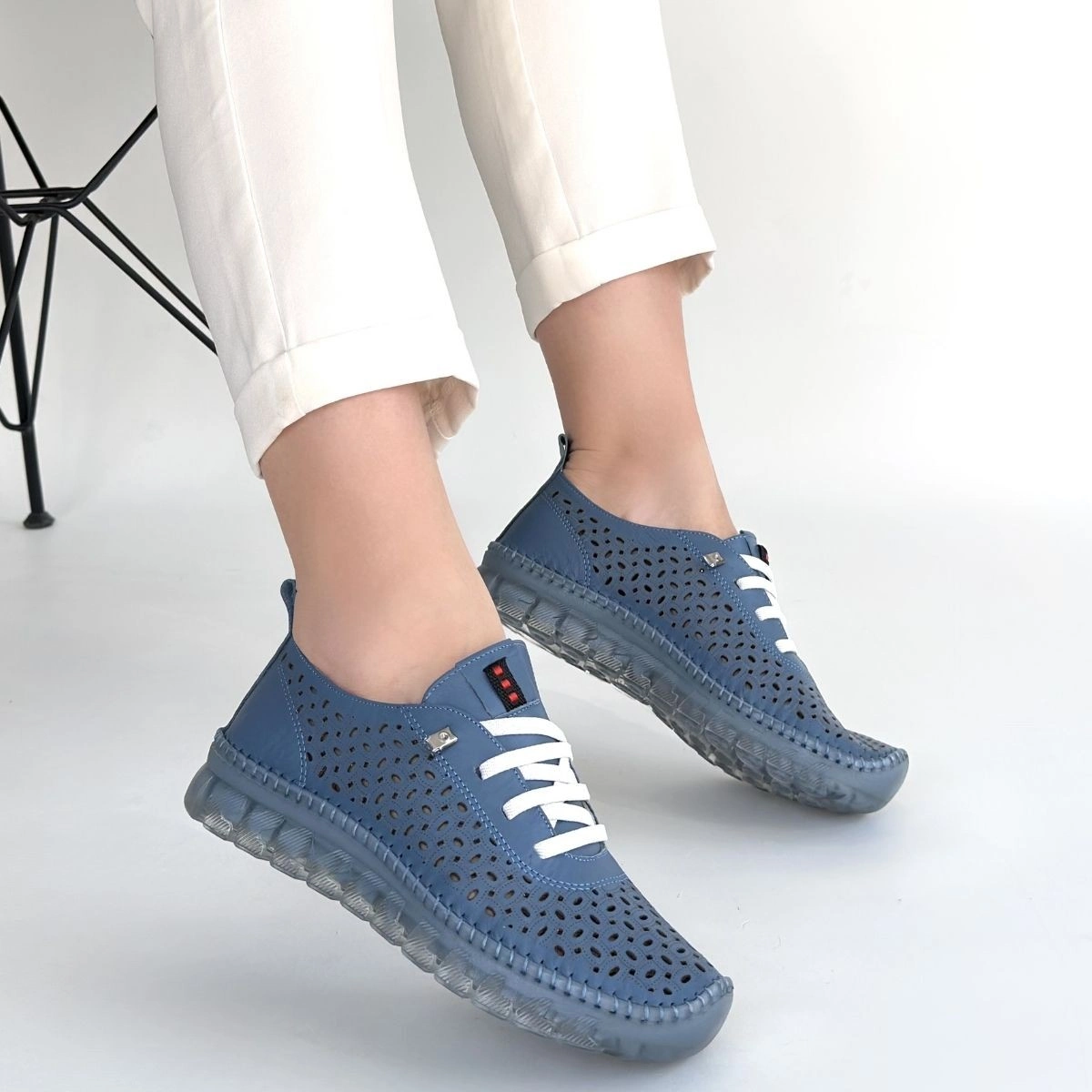 Otja Mavi Deri Lazerli Bağcıklı Spor Ayakkabı