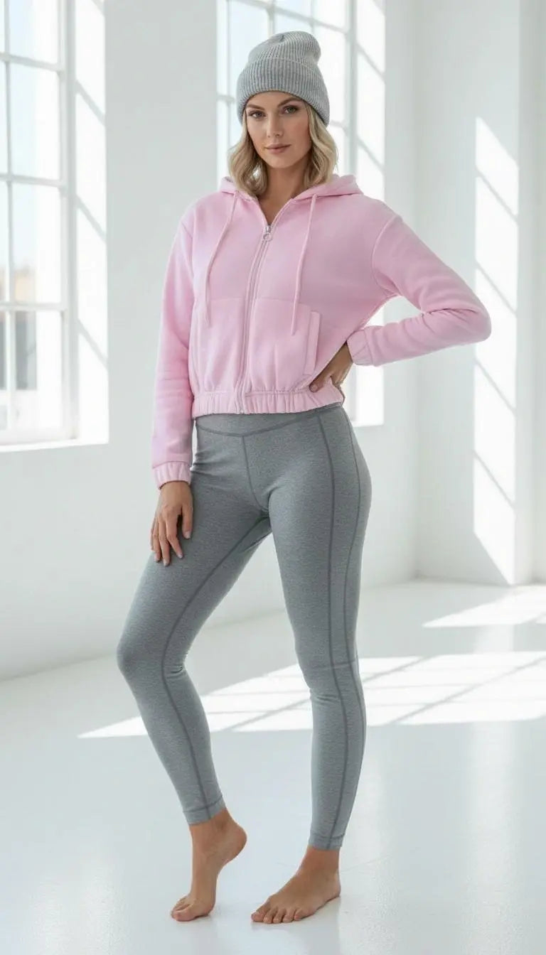 3 iplik şardonlu Kapşonlu fermuarlı kısa üst pembe pat8590