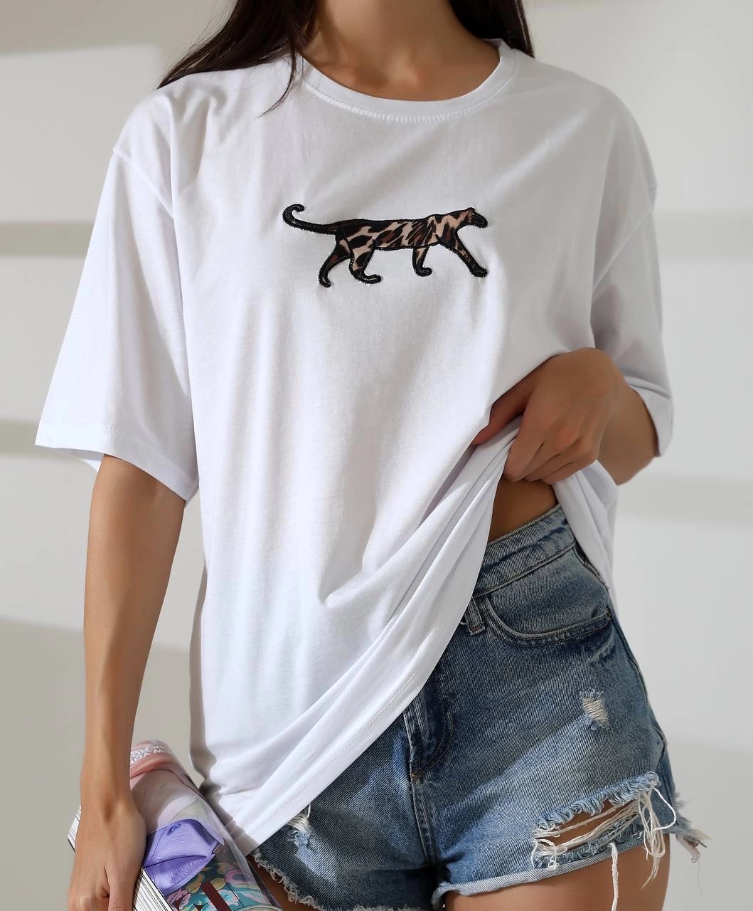 Kaplan nakış işlemeli Oversize tişört
