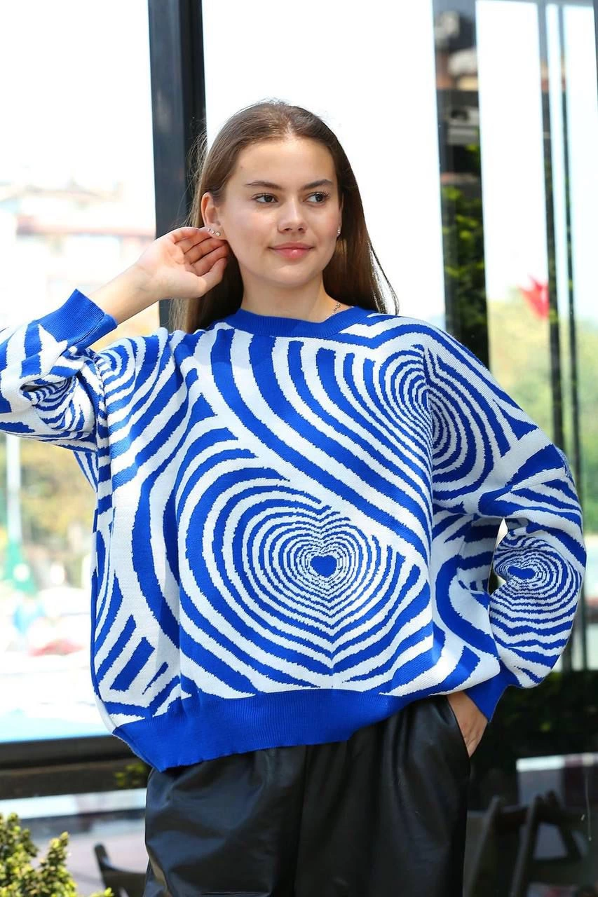 Şıklığı ve rahatlığı bir arada sunan Beyaz Kalp Çizgili Kazak, gardırobunuzun vazgeçilmez parçalarından biri olmaya aday!