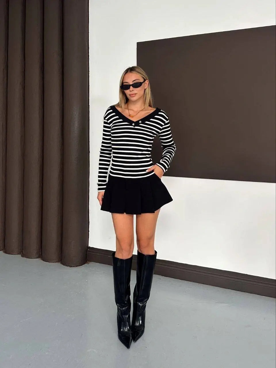 - V yakalı tasarımıyla feminen bir görünüm sunar.